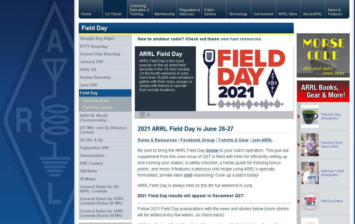 開催日時:6月26日1800-27日2100 UTC 周波数:全てのバンド(WARCバンドを除く) モード:全てのモード 交信相手:北米の局(DX同士のQSOは無効) ナンバー:TX台数+参加クラス+ARRLセクション JAの局が自宅から商用電源による1台のTXで参加する場合は「1D DX」 クラス: A:Club/nonclub portable B:One/two person portable C:Mobile, D:Home E:Home-emergency power F:EOC(非常通信指揮局) ポイント:1点/QSO (CW/digitalは2点/QSO) ※JAを含むDX局はチェックログ扱い ログ:キャブリロ形式の局をWebから提出 提出用URL:http://field-day.arrl.org/fdentry.php 提出期限:7月27日 2059UTC ルール詳細: http://www.arrl.org/field-day ※過去2年ほど、FT8/FT4では7074や14074などの通常QRGが使用されていました。 期間中の北米は、FD一色に見えます。 |
