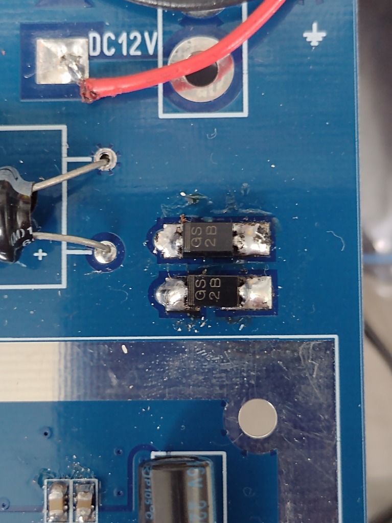 通電はOKでした。 送信・受信はNG、音は出ませんでした。 ラジオの通電はOKです。 ケースから取り出しました。 電源、マイク、スピーカーの端子基板です。 配線の変更がされていますが、青いコードは何のためかわかりません。 SONYのICBシーリーズはAC電源ジャックの+−が逆になっており、電源の逆接続が多いです。 保護ダイオードが取り付けられていますが、これでは過電流保護にもなりません。 ダイオードはマイナス側に変更しました。 逆接続になってもOKです。 何のためかわからない青いコードは取り外しました。 水晶実装場所の状況。 赤枠の場所にはシールド板があるはずです。 矢印のリード線はそのアースの役目でした。 ラジオのバーアンテナからの配線が修復されています。 細い線のため修理の際に切ってしまったり、基板をケースから引きぬくときに、スピーカー裏の磁石に引っ掛けて切断してしまうことがあるので注意が必要です。 ラジオ周波数カウンターの配線です。 ピンジャックで外せるところ、直接ハンダ付けされています。 だいぶ手を入れてある無線機ですね。 Sメーター照明に紫色のコードが直結されています。 回路図どおり照明スイッチに引き直しです。 照明スイッチの爪が折れて破損しています。 照明スイッチを取り外す際に破損したようです。 ネジも短かいので、長いネジに交換してガッチリ固定しました。 7セグメントのマイナス配線だけが外され、他の場所に移設されています。 元の場所に戻しました。 Sメーターを取り外しました。 この無線機はCRCのような油が全体に吹きかけられています。 おそらく接点復活剤かと思います。 油でベタベタですね。 チャンネル切りかえスイッチです。 油でベタベタです。 油をちょっとかけ過ぎですね。 部品が焼けた場所がありました。 部品を再構築しました。 交換されていた部品の定数が間違っていました。 間違っていた部品を交換しました。 送信系統の場所です。 たいへんご苦労をされましたね。 こういうのを見ると涙が出ますね。 部品を取り外しました。
