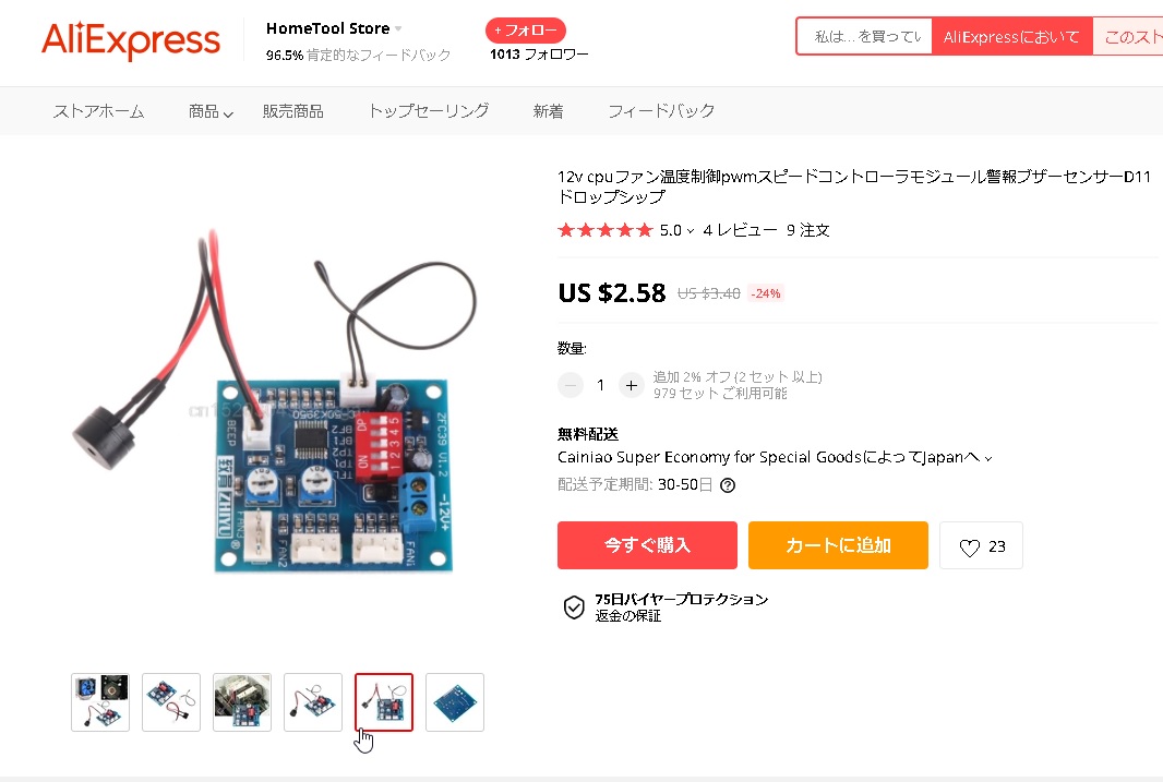 前回、CBの送信回路用に昇圧ボードを調べていたのですが、小型でも300mAも出力がとれたので、他にもないかと発注したものです。 このボードは、出力電圧が可変できないもので、電圧指定で購入します。今回は、送信用ということで9Vのものを購入して調べてみました。 前回同様の負荷試験を行いました。 入力電圧が3.7Vでは出力9Vにて出力に抵抗を接続してどこまで電圧がドロップしないか調べました。 結果としては、電流容量は80mAくらいまでした。残念。。。 CB送信に使うには300mAくらい必要になりますのでこれは使用できませんね。 ICは、MT3608が使用されています。データシートは こちら 9Vでの用途はあまりなさそうなので5Vに改造して保管しておきます。 下は速攻で手書き計算したメモです。殴り書きで申し訳ないですがご参考として貼っておきます。 もともとついている抵抗は実測してみるとR1が280k、R2が20kのようですが、マークされている定数は全然かけ離れた数字になっています(なぜマークと実際の抵抗値が違うのか不明??) 9VではR1が280kになっているということで、R2はそのまま使用した場合、5Vにするには146kにすればよいことになります。 ここでは、150kΩをつけてみました。結果は5.1Vになりましたので、この計算で使えるようです。 |