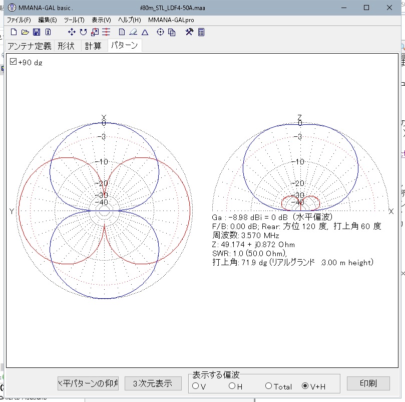 しかし、MMANAによるシミュレーションでは、上下左右どの位置にあってもSWRやゲインの差は殆どありませんでした。