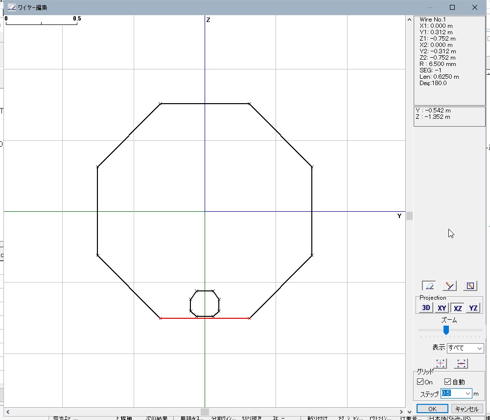 が、MMANAでこの蛇腹(コルゲート)を表現する方法が分からないので、13mmの半分、6.5mmの銅パイプとして設定しました。