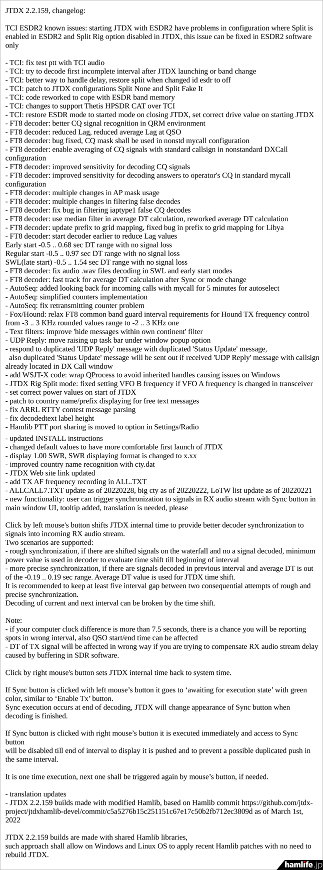 -JTDX2.2.159は、2022年3月1日時点のHamlibコミットhttps://github.com/jtdx-project/jtdxhamlib-devel/commit/c5a5276b15c251151c67e17c50b2fb712ec3809dに基づき、Hamlibを修正したビルドを作成した。