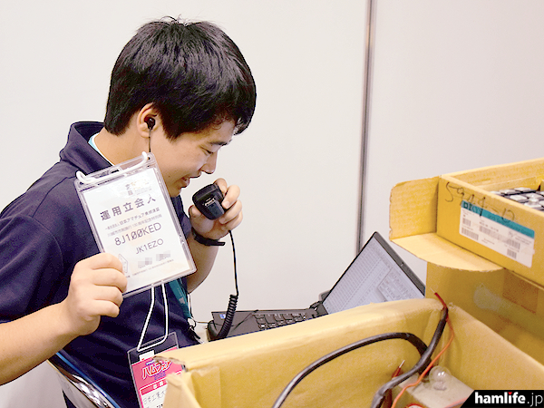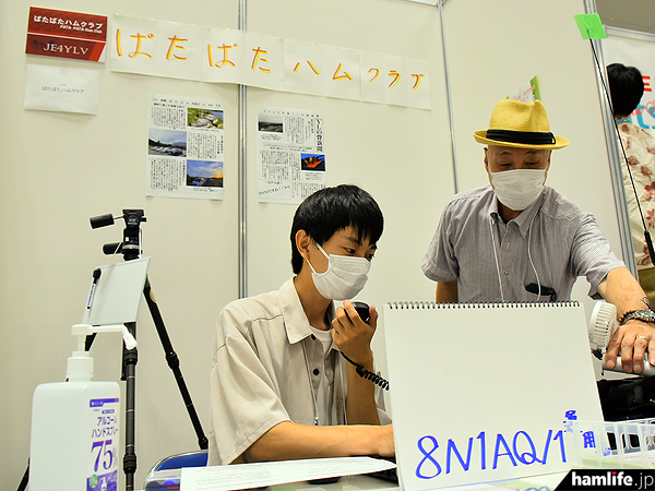 ぱたぱたハムクラブ(ブース番号:J-62)から、「8N1AQ」の運用を430MHz帯のFMモードで行っていた。