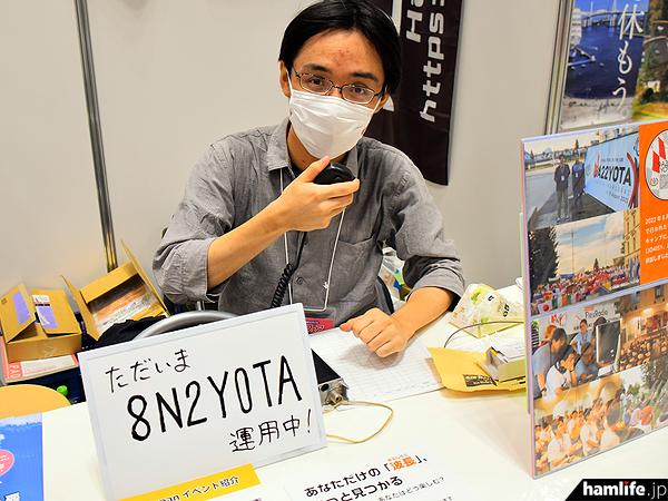 YOTAとハムのラジオ(ブース番号:J-42)では、今年(2022年)3月1日にYOTA Japan は法人化し、一般社団法人Youngsters on the Air Japanを設立いたことを記念して開局した「8N2YOTA」。ツイッターで「432.80MHzにて会場内オンエア中です。交信よろしくお願いします!」とつぶやいていた。