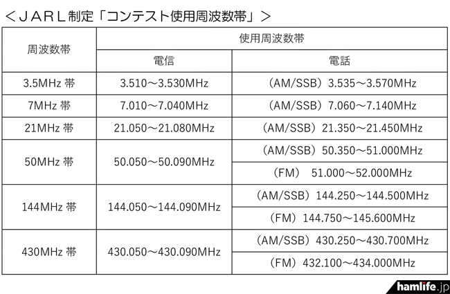 ※レピータやインターネット回線を使用しない通常交信においては、JARL制定の「コンテスト使用周波数帯」を使用してください。