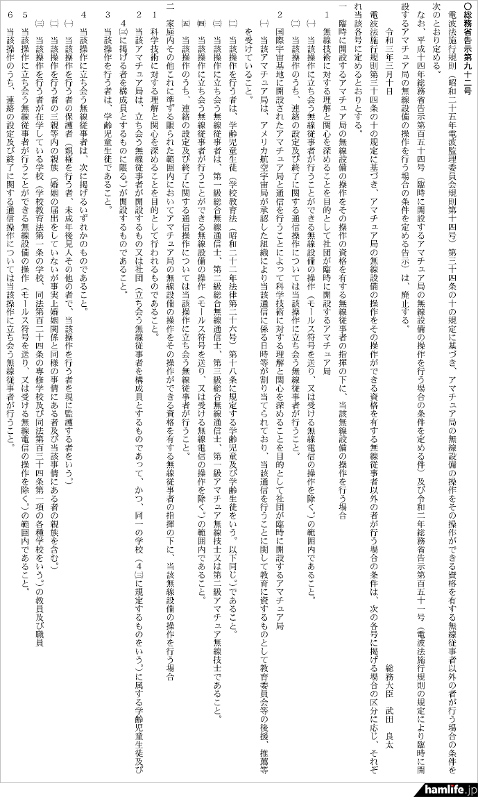 <3月10日の官報に掲載>総務省が「アマチュア無線の社会貢献活動での活用」「小中学生のアマチュア無線の体験機会の拡大」をきょうから施行