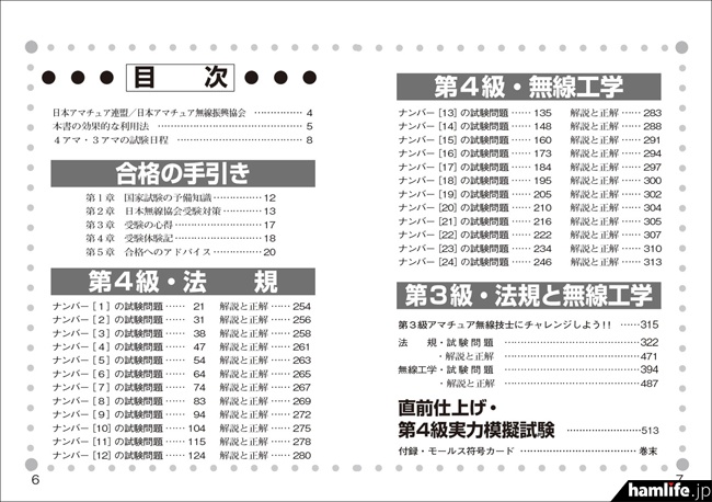 同社によると2021年版は、2020年までの新問題を分析し予想問題集として信頼性の高いものを新たに収録している。総ページ数は512ページで、「例年同様に、第4級の問題は24問出題される順番ごとに設問を整理し“何番の問題はこういう問題が出題される”というように、より直接的に試験問題を表現できるように工夫しています」と説明。「モールス信号を発信できる第3級の新問題も多数収録」し、付録として第3級の試験用モールス符号カードもついてくる。