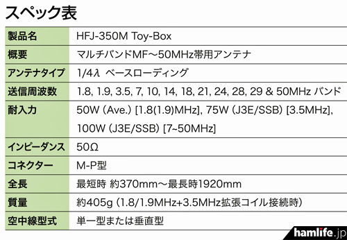 1.HFJ350M(3.5~50MHz帯 テレスコープ型アンテナ)
