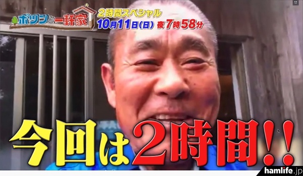 テレビ朝日系の人気バラエティ特番(制作は朝日放送テレビ)「ポツンと一軒家」の2時間スペシャルが、2020年10月11日(日)19時58分から放送される。この中で「埼玉県にある山の山頂でアンテナ6本を自力で建てた、アマチュア無線マニアの趣味の館」として2018年6月に放送され大反響となった、飯塚政吉氏(JA1UTS)のシャックとアンテナが再び登場、現在の様子も紹介されることがわかった。公開された予告編では昨年の台風でこのアンテナ群にも甚大な被害があったことが伝えられている。