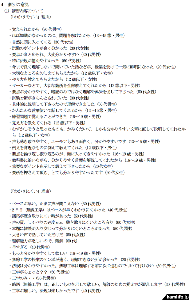先週のアクセスランキングで1位は、一般財団法人 日本アマチュア無線振興協会(JARD)が行っているアマチュア無線技士の養成課程講習会において、2022年度の「集合講習(教室形式)」で実施した第四級アマチュア無線技士(4アマ)標準コースと、第三級アマチュア無線技士(3アマ)短縮コースの受講者を対象としたアンケート結果(回答率85%)を同協会が公表したニュース。まとめられたアンケート結果は50ページ以上にのぼり、受講者からの意見や感想は、厳しい内容も含めてすべて掲載。より信頼できる講習会となるよう改善に取り組んでいくとしている。