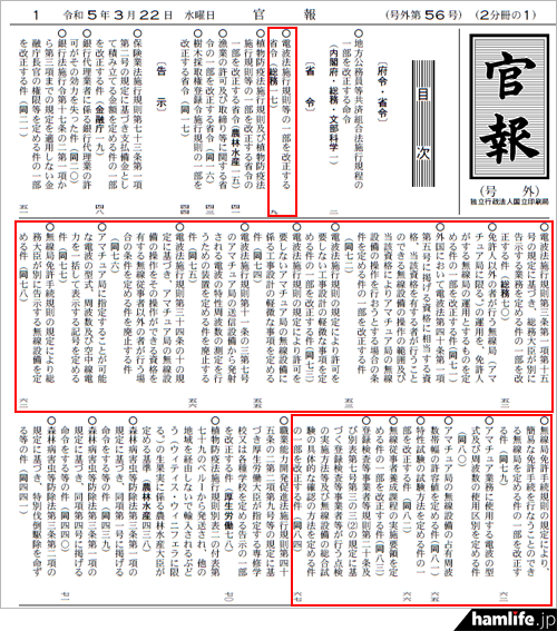 1)< “即日施行” と “9月25日施行” に分かれる>総務省「アマチュア無線の制度改革」、3月22日の官報号外で公布される