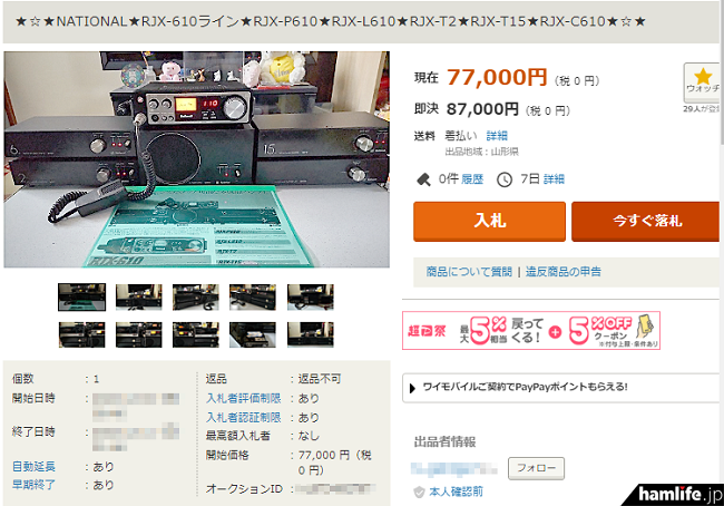 1)<まとめて出品されるのは稀だと話題に>松下電器産業(現 パナソニック)の50MHz帯SSB/CWポータブル機「RJX-610」がフルライン状態でヤフオクに登場