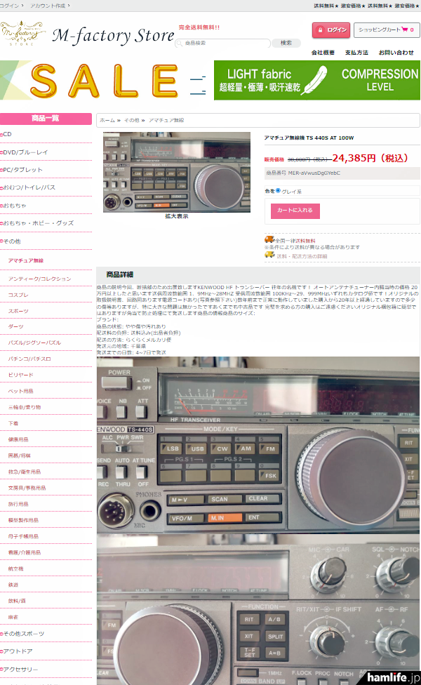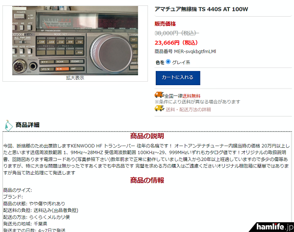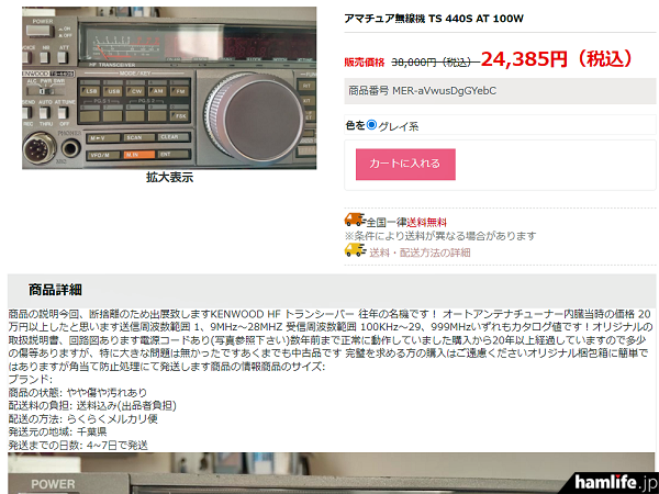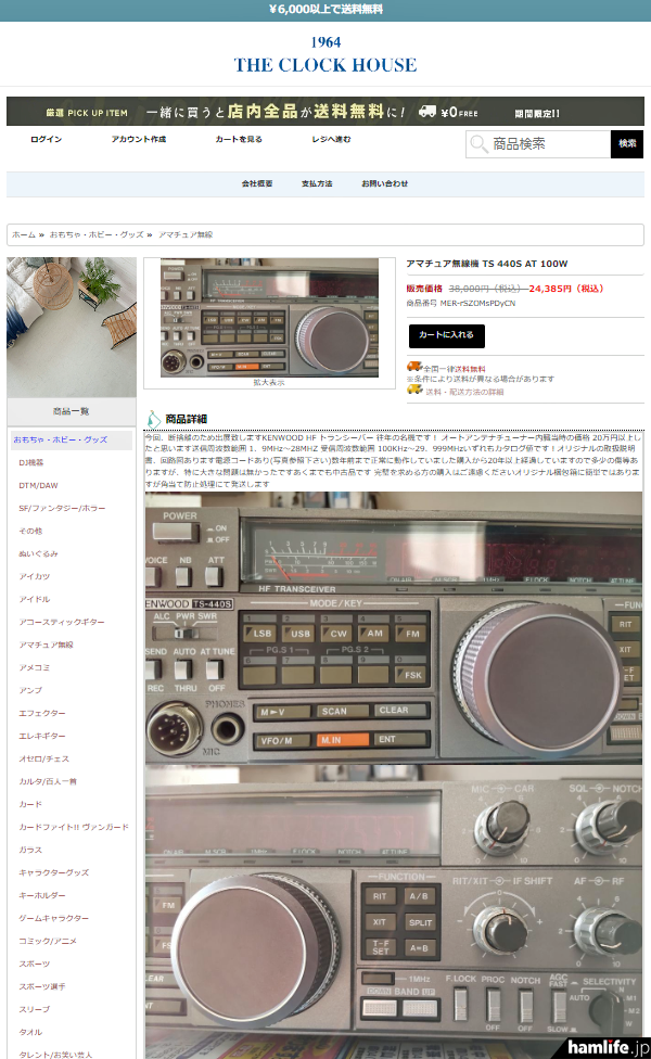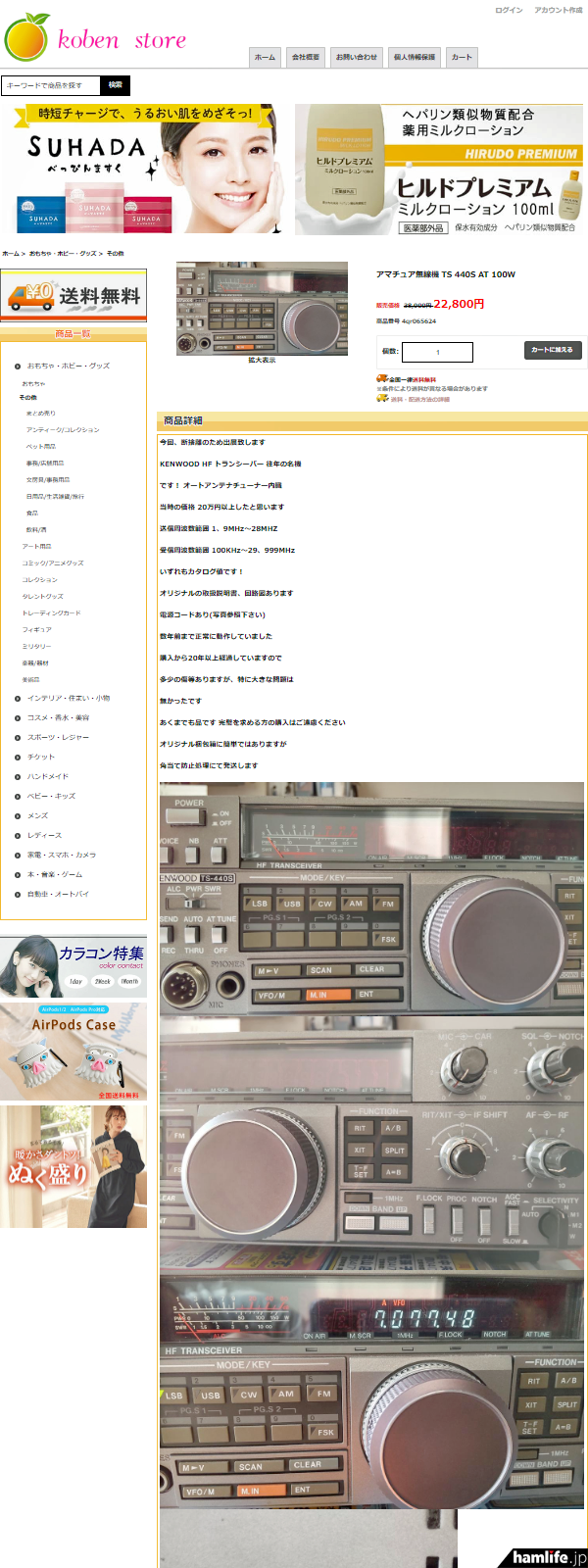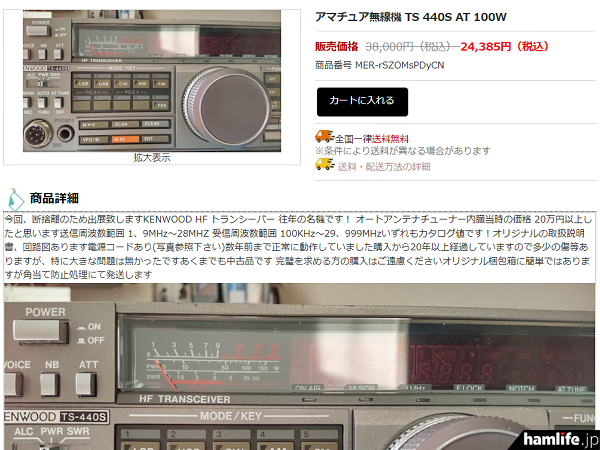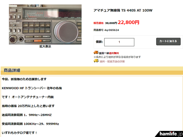 確かに、ヤフオクなどオークションサイトに出品されたときの画像と思われる、1980年代後半に発売されていたケンウッド製(現・JVCケンウッド)のHFトランシーバー「TS-440S」の画像が使いまわされた状態で貼り付けられ、どれも似通っている。強いて言えば、値引き後の販売価格が多少違うことぐらいだろうか。