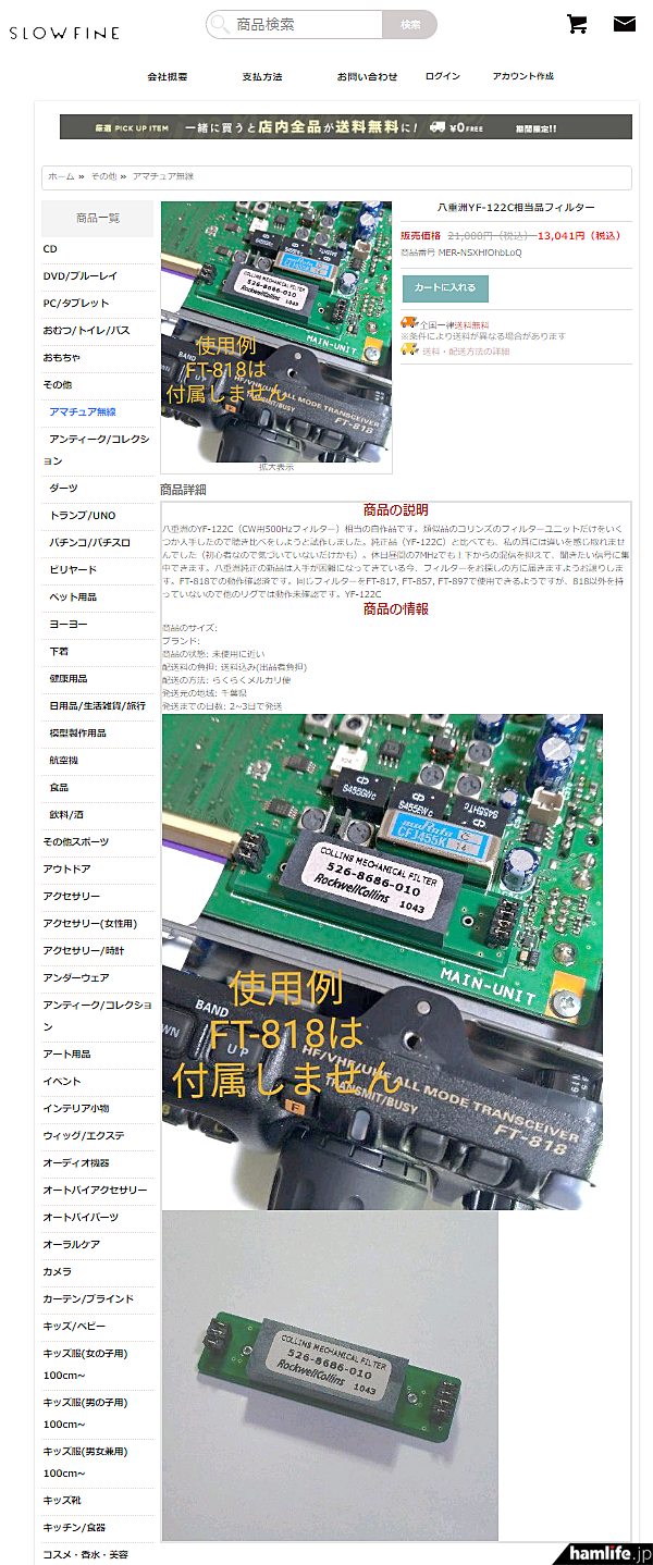 1)<代金を振り込んだ結果…>読者投稿! 怪しい通販サイトと疑いながら「FT-818ND用のCWコリンズフィルター」をポチってしまった