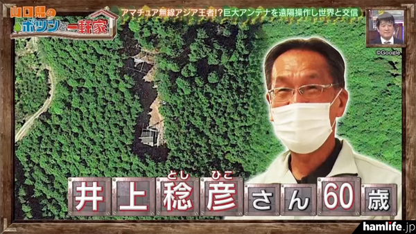 2月27日に放送されたのは、山口県周南市の井上稔彦さん(JH4UHW)が建設したシャックと自立タワー5基を要する巨大なアンテナ群だ。井上さんはコンテスト愛好家で1994年のALL ASIAN DXコンテストではアジア州で第1位になったこともあるという。