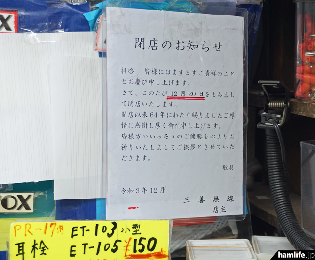 秋葉原ラジオセンターの三善無線が2021年12月20日閉店