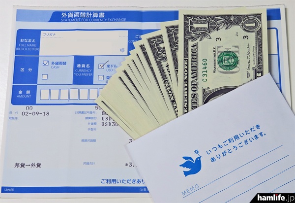 その「1ドル札」の簡単な入手手段として、“地元の郵便局(集配局)の窓口で外貨両替を申し込む”という方法を使っているDXerは多かったが、昨年(2020年)12月30日をもって郵便局の窓口における外貨両替の取り扱いが終了した( 2020年9月19日掲載の記事参照 )。マネー・ローンダリングおよびテロ資金供与防止に向けた態勢強化の一環という。