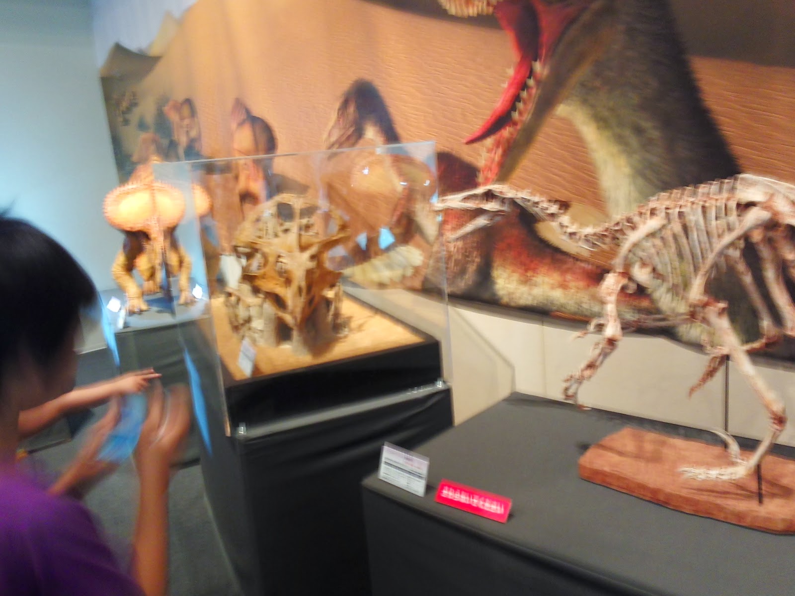 化石がメインで、復元されたトリケラトプスが少なく子供にはちょっと難しかったようですが、その後のこちらのコーナーは反動でかなり熱くなってました。