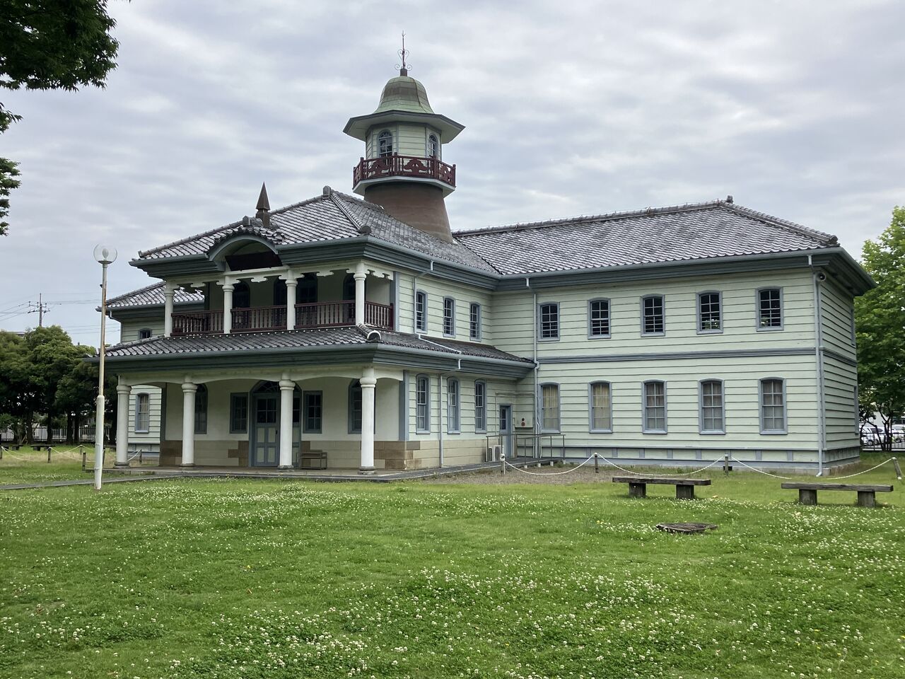 途中に県立歴史館があります。あいにく休館日でしたが建物を外からみながら回ってみました。写真は明治時代に作られた水海道小学校本館ということですが、本当に昔の建築物は素晴らしいですね。