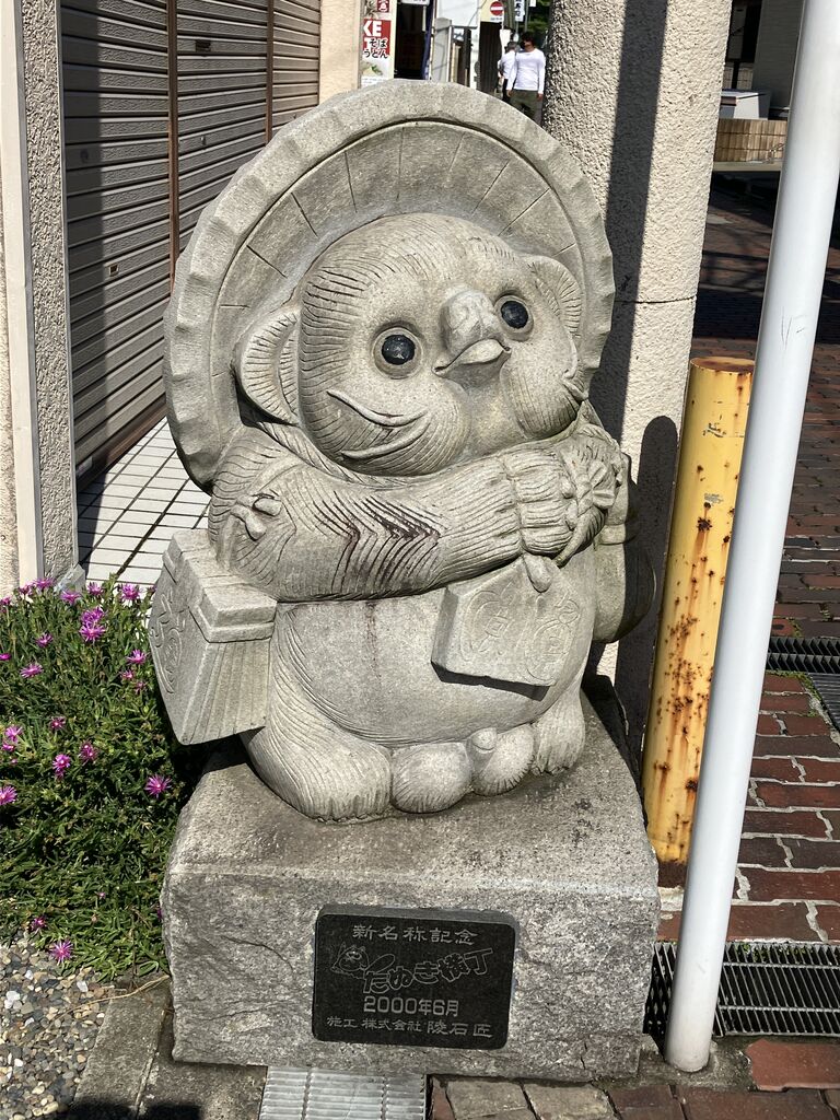 商店街を過ぎて飲み屋街は狸通りと呼ばれているようで可愛い石造が見られます。