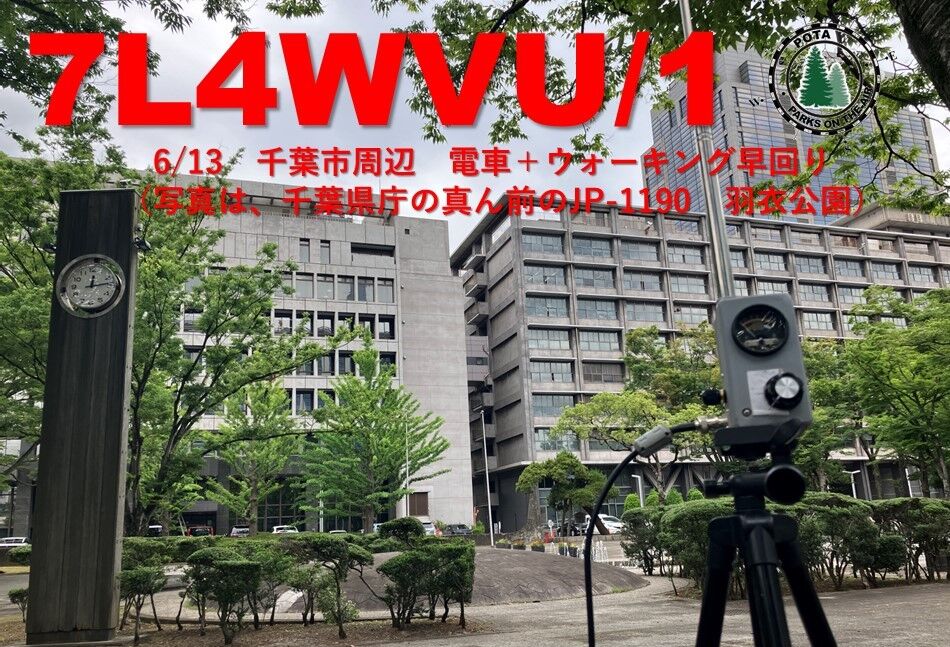 羽衣公園は、千葉県庁の真ん前の広場です。全く想定していなかったのですが周りをビル、モノレールの駅に囲まれており、無線は厳しいな~という感じです。前に行った浜松町駅横の 旧芝離宮恩賜庭園も同じようにビルと駅で囲まれていて全く交信できなかったことを思い出しました