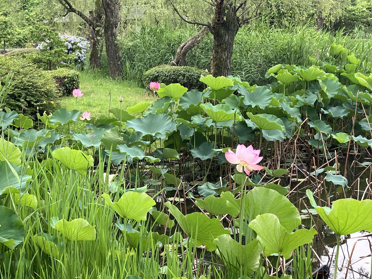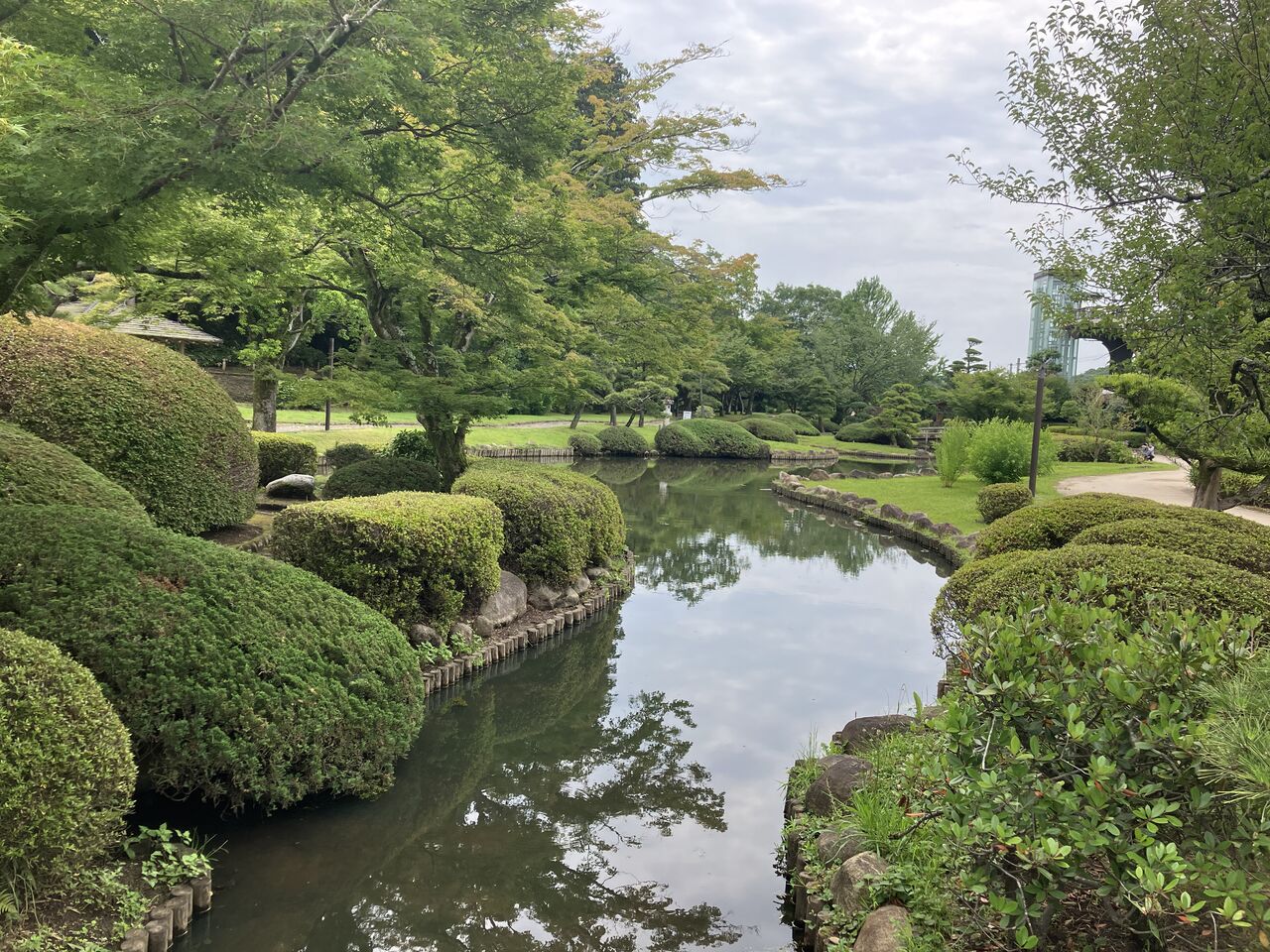 美術館横の凄く整備された公園です。千波湖が見える綺麗な芝生に転がって運用しました。