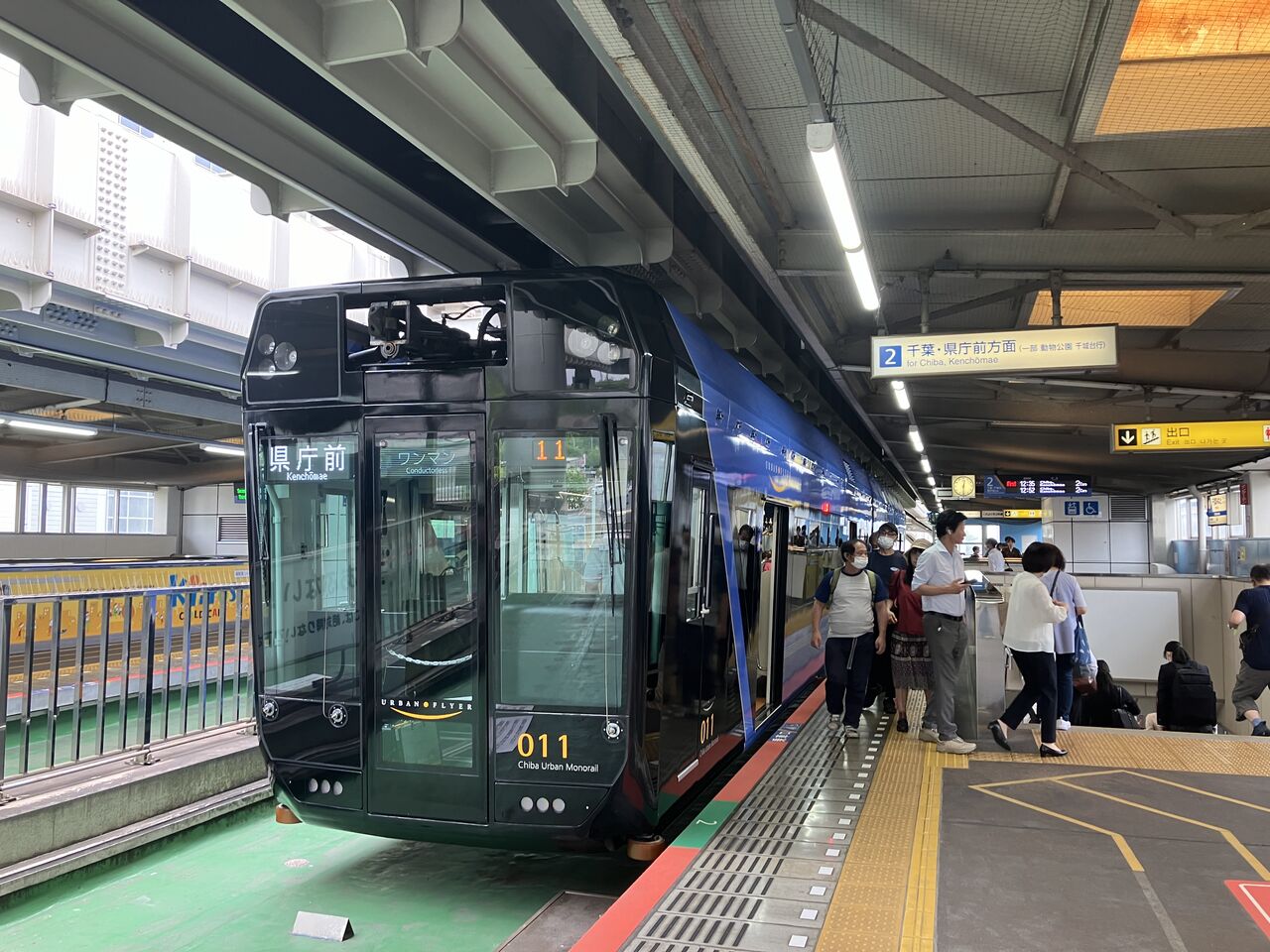 羽衣公園の横に千葉モノレールの県庁前駅がありますので、モノレールでちばみなみ駅まで移動しました。このモノレールは 懸垂式という非常に珍しいもの で車道の真上を走るため景色が楽しめます。湘南モノレールの景色がすごいというニュースをみていつか乗ってみたいと思っていたのですが、千葉で初めて乗ることができて感激しました。