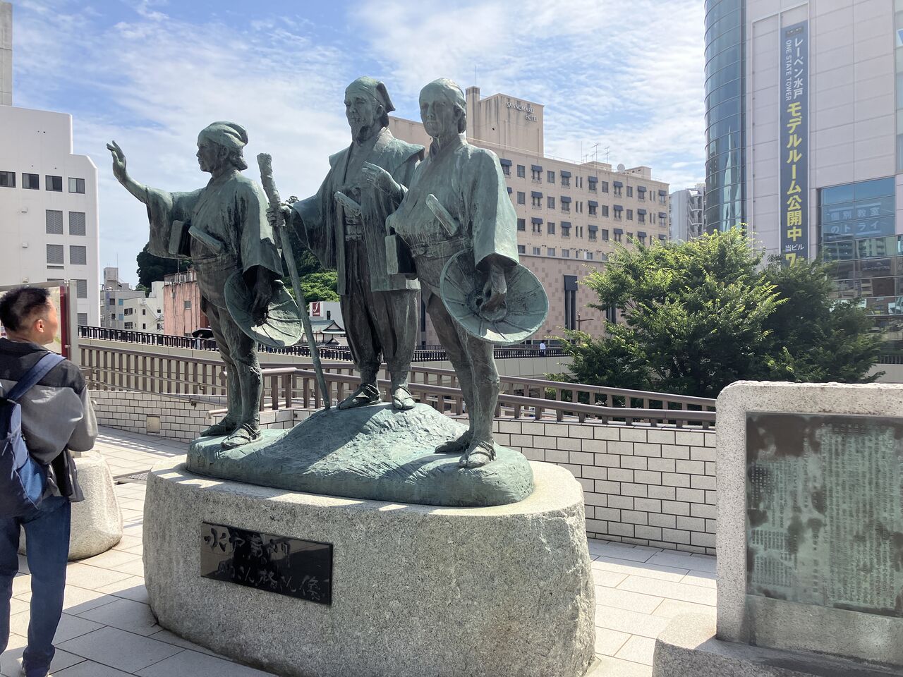 水戸駅に9時前に到着。黄門様が出迎えてくれました。日差しが強くて暑いです。