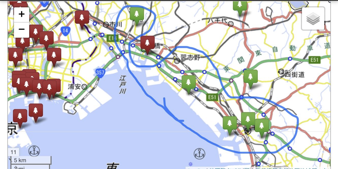 この辺りは公園ばかりでどこからが桜川緑地か分からなかったのでMyACTの指示部分まで歩いて行って運用しました。