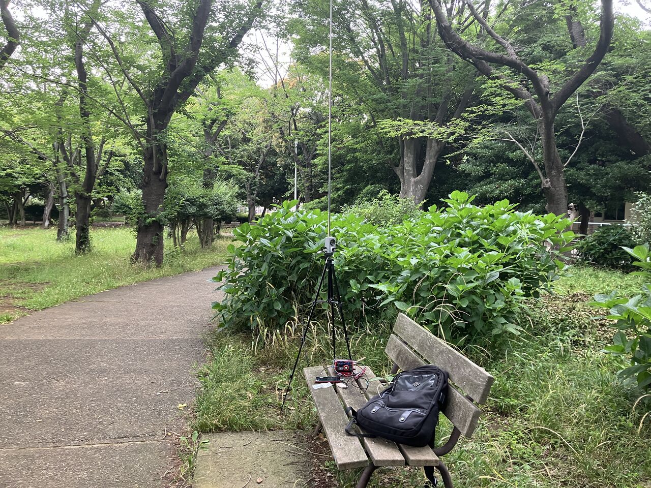 お空のコンディションは40mバンドは夏型であまりよくなかったのですが、今回は前日に運用場所をアナウンスしていたせいか追っかけて頂いた方々が多かったようです。公園に到着して開始前に殆ど見えていない状態でも波を出すとお馴染みの方が沢山呼んで頂けるのが嬉しかったです。POTA移動は楽しいですね。