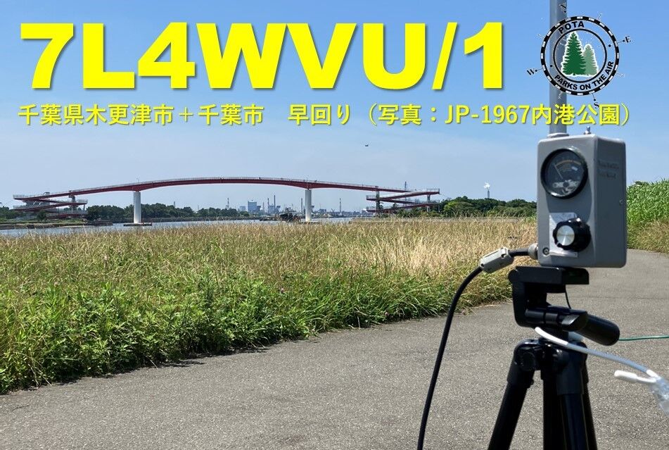 内港公園の割と近くにありますが、最初、どこにあるのか分かりませんでした。地図をみるとこの位置なのですが、どうみても雑草ばかりの空き地です。雑草をかき分けていくとベンチが1個だけありました(笑) もちろん木陰もなく炎天下、スマホも高温注意で動作しなくなってしまいました。しかし、不思議なのですが前の品川コンテナ公園といいとんでもない場所で運用するときに限ってコンディションが悪くなります。今回も40mは全く入感がなく暑さと闘いながら1時間くらいかかってやっとACTできました。そこから木更津駅まで25分歩き14時前には到着しました。