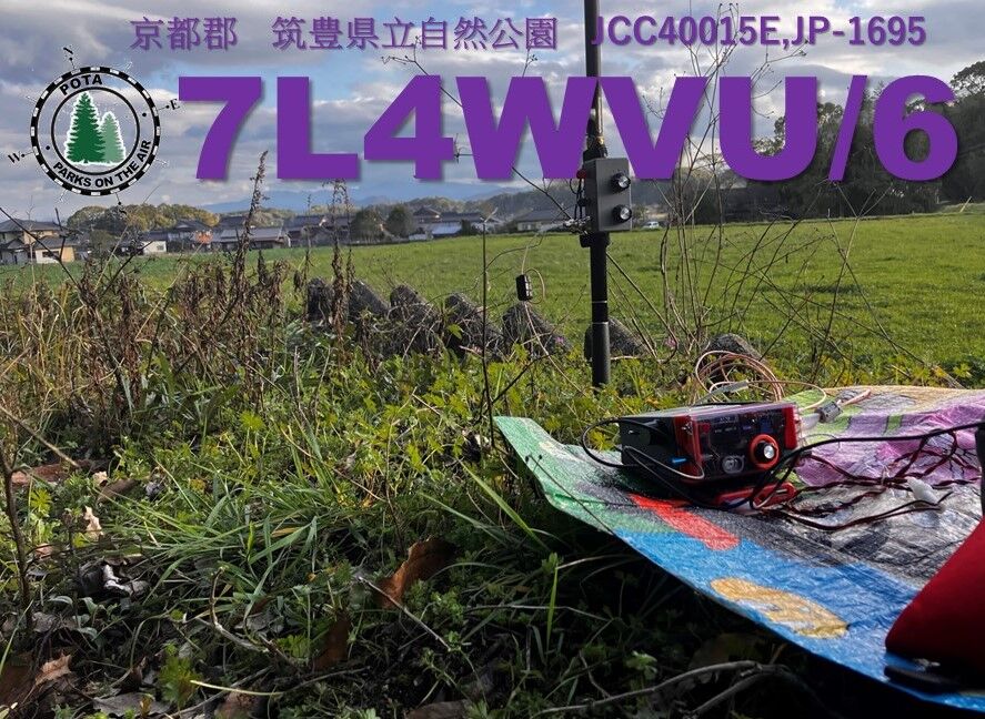 西日本ハムフェア会場の京都郡の公園です。といっても広いエリアなので地図をみて東側に開けている用水路の脇にアンテナを立てて運用しました。17時を過ぎていたので40mも1エリア~8エリアくらいまで開けて30分程度でACTできました。