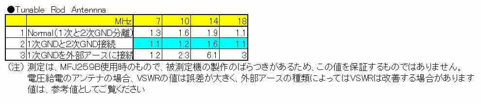VSWRはアースや無線機の種類により誤差を生じるため、ここの測定データーと差異があることをご理解ください。