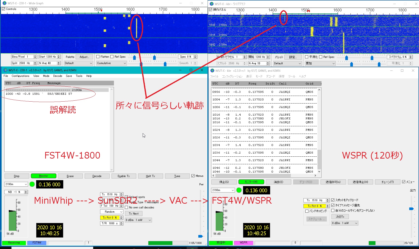 FST4W-1800の30分ビーコンモードと、在来のWSPR(2分)ビーコンを並行して受信中です。