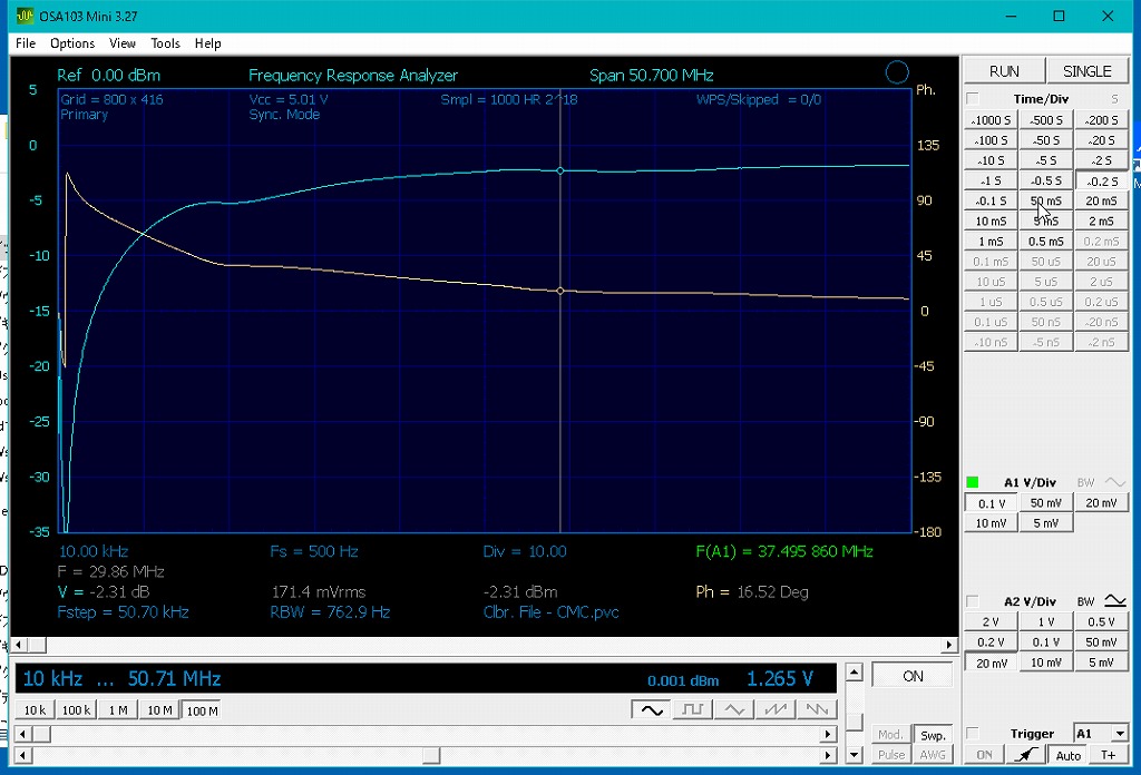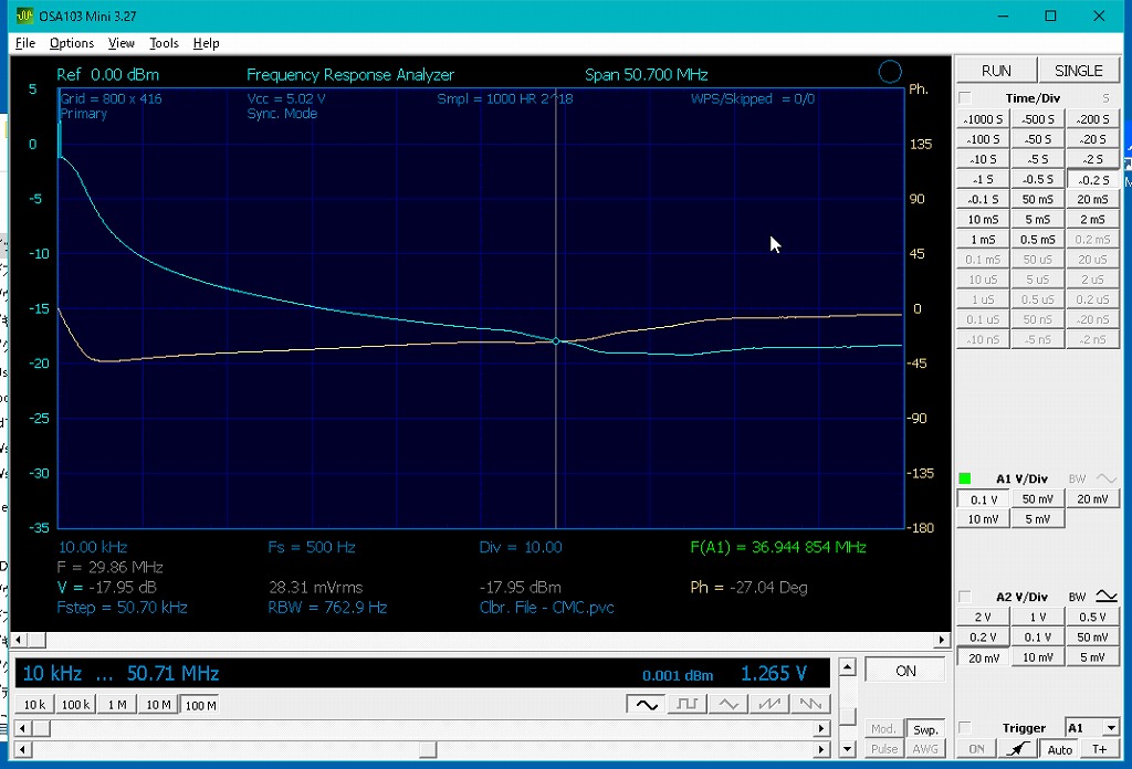 トランスが今一つで、20MHz辺りから怪しくなりますが、ツボは外してない(考え方は大体合っている)ようです。
