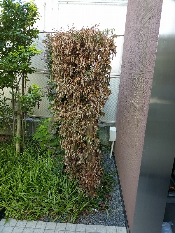この天気なので水不足かと思い、夕方かなりタップリと給水していましたが、どんどん悪くなりついに立ち枯れ状態となりました。