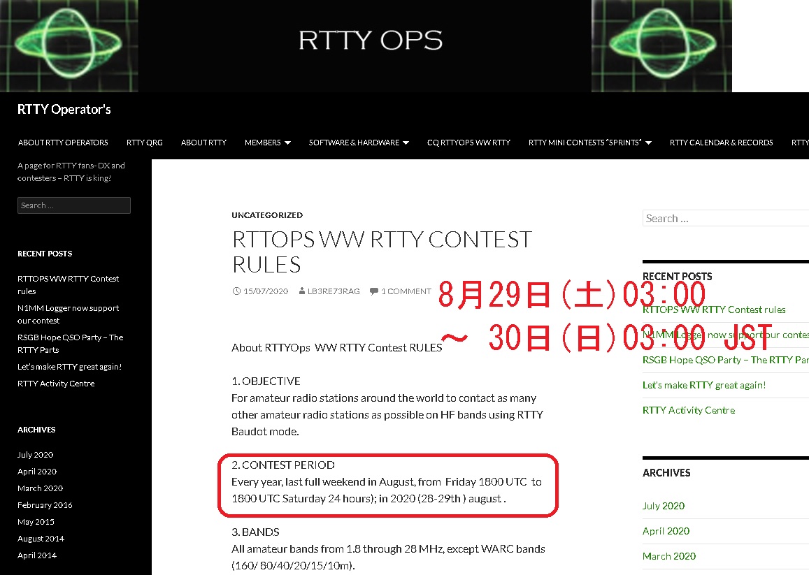 --- RTTY OPS WW RTTY [8月29日03:00~30日03:00] ---