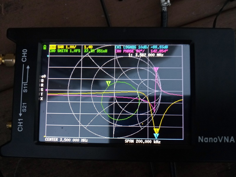 こんな感じで、最初はザクザクと切り詰めて、3.5MHzに合わせました。