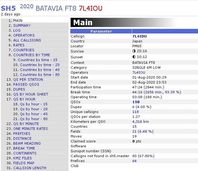 --- BATAVIA FT8 [8月1日09:00~3日08:59] ---