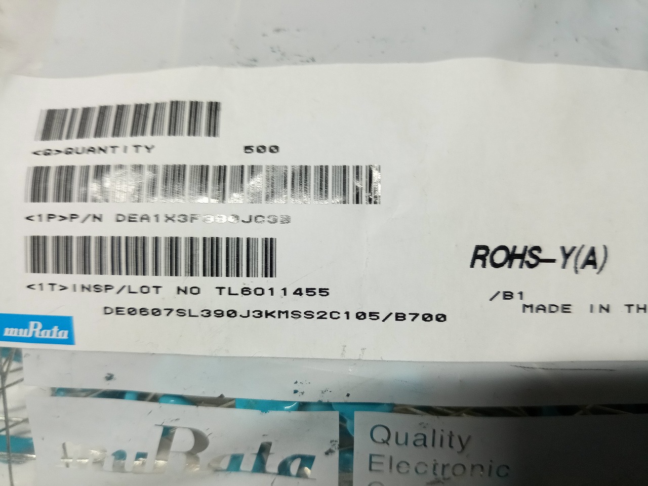 某オークションで「村田の39pF 3kV耐圧のセラミックコンデンサ、一袋500個入り」といううのを見つけて飛びつきました。