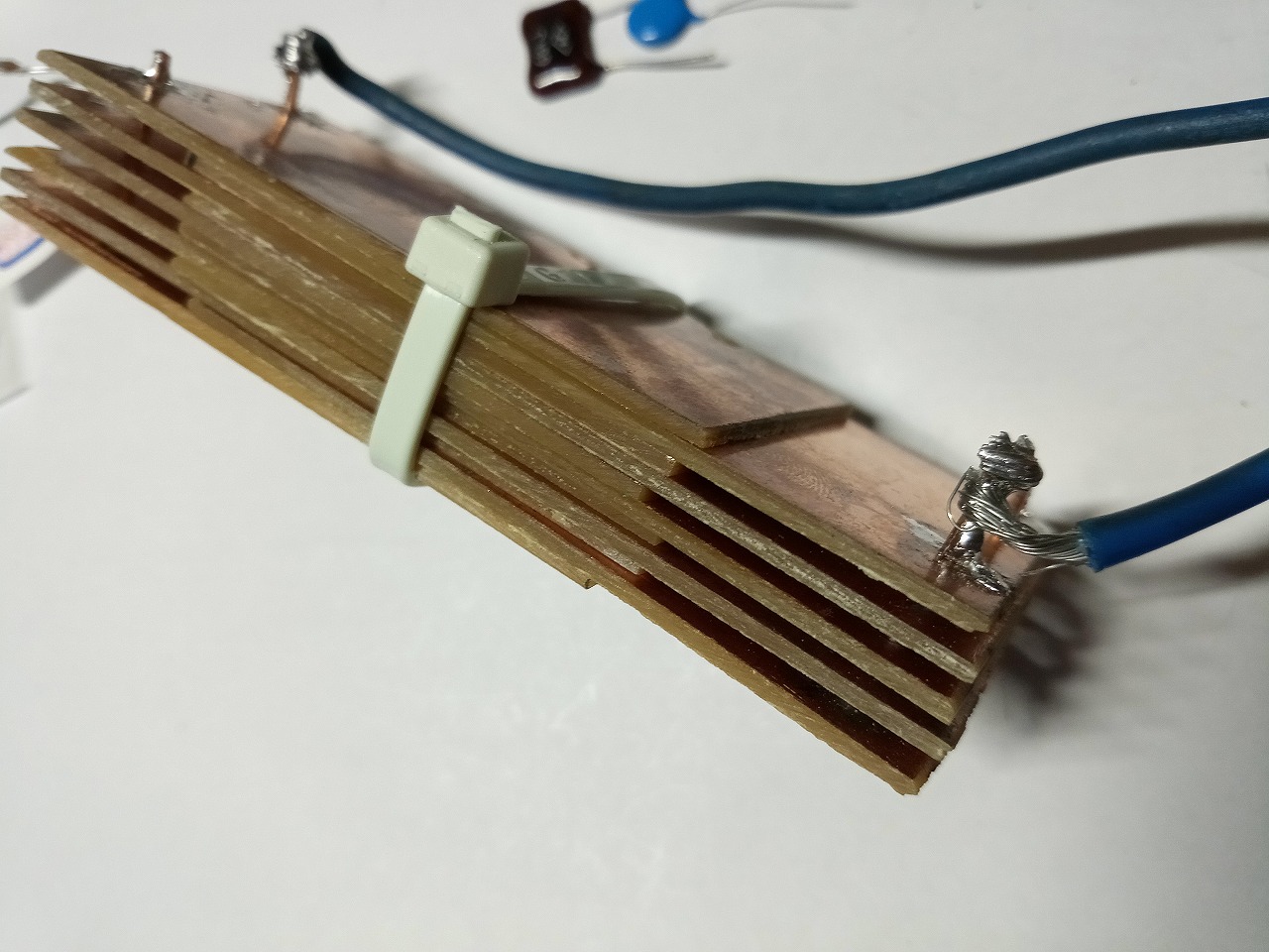 そう言えば、ずいぶん前に、銅箔テープとテフロンフィルムでBPF用コンデンサにチャレンジしたことを思い出しました。