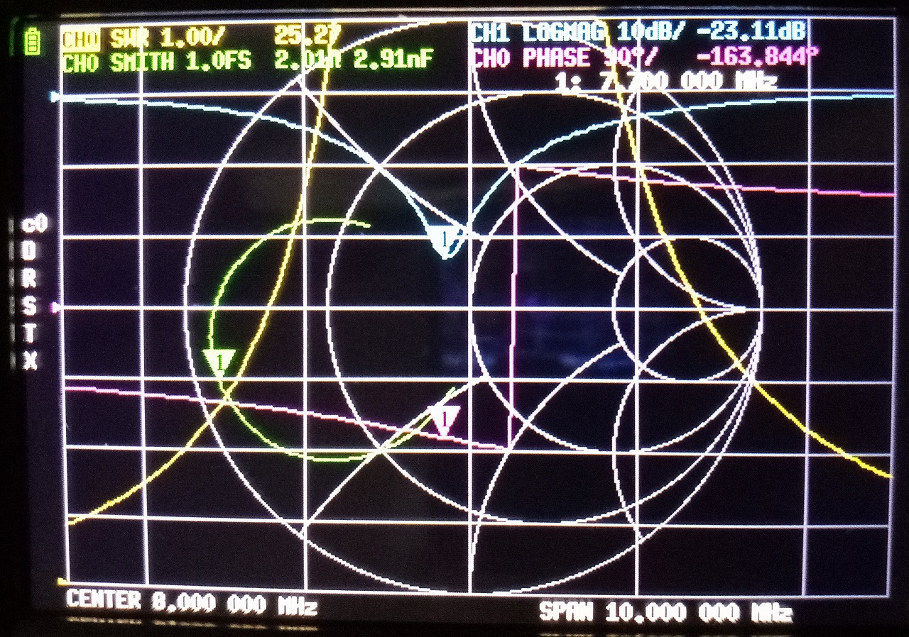-23.11dBで、SWRも同調点で7~8辺りまでしか下がりませんでした。