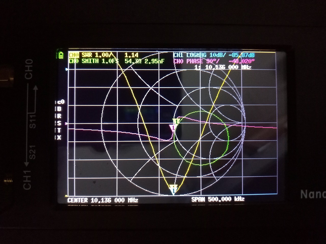 このコンデンサを使った時のSWR最良点は約1.2でした。