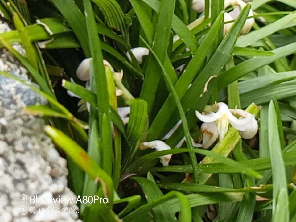 グランドカバーの龍の髭(リュウノヒゲ)に小さな花が咲いていました。