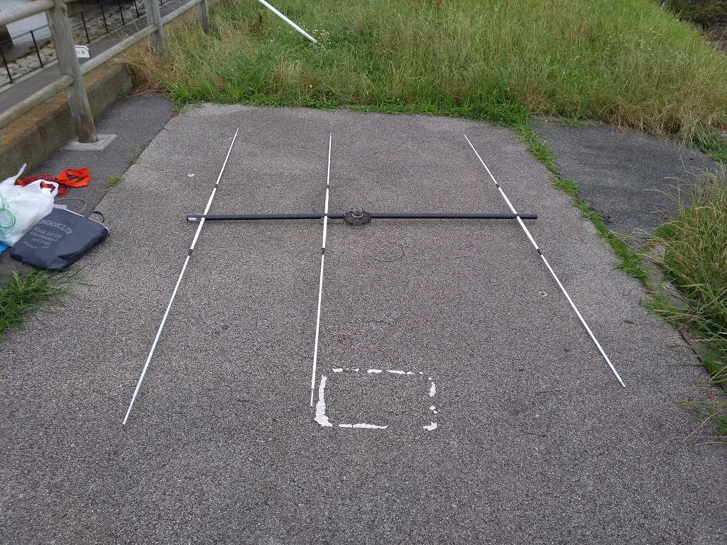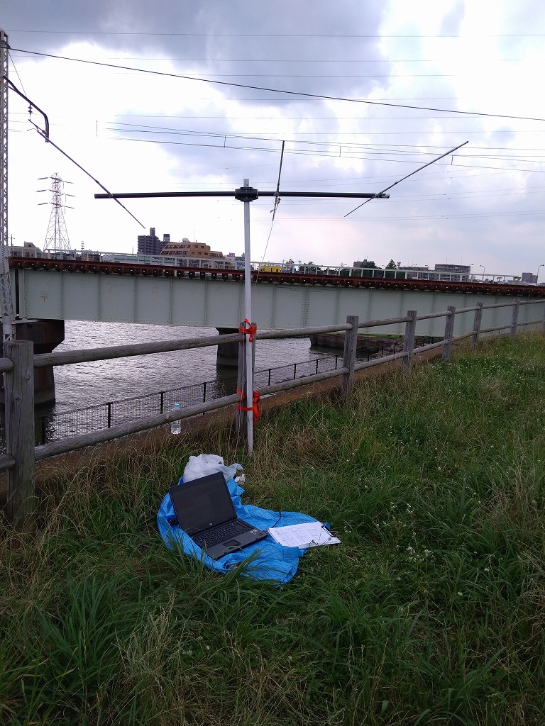 近所の中川放水路の土手へ一式を持ち込んで組み立てました。
