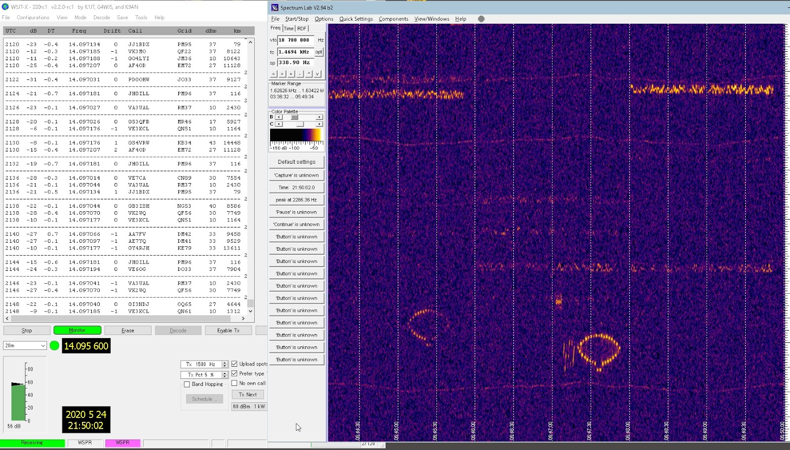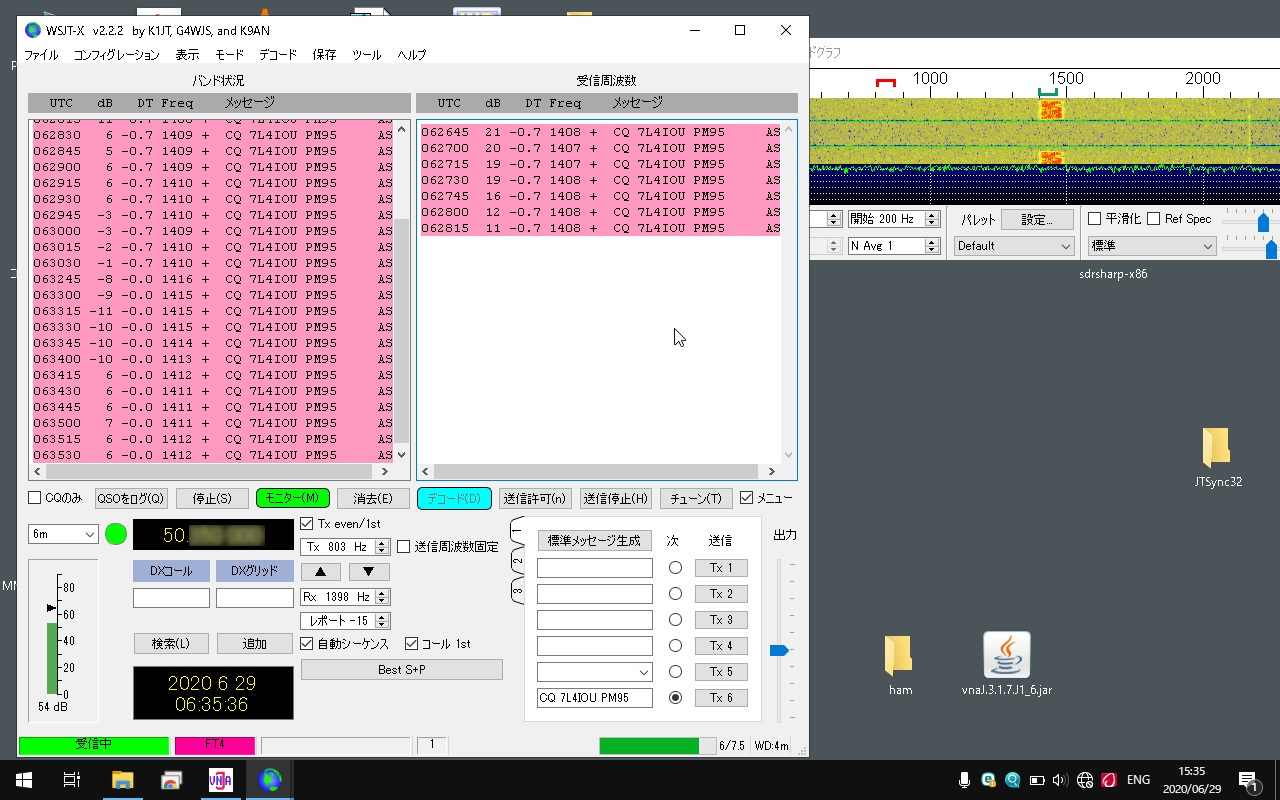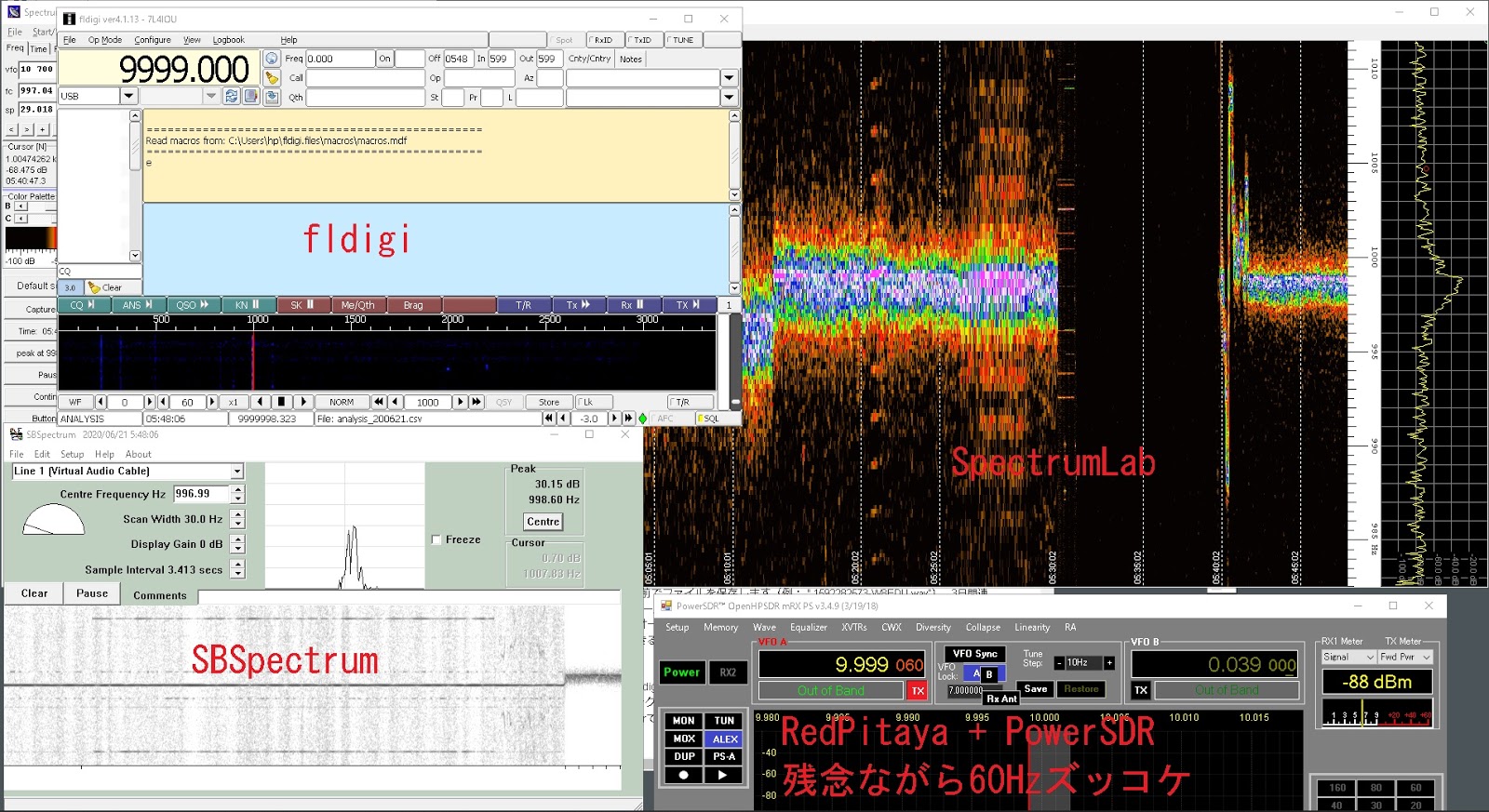 折角なので、ドップラーグラムも記録しておきたいと思って、久しぶりにG3PLX作のSBSpectrumも起動しました。
