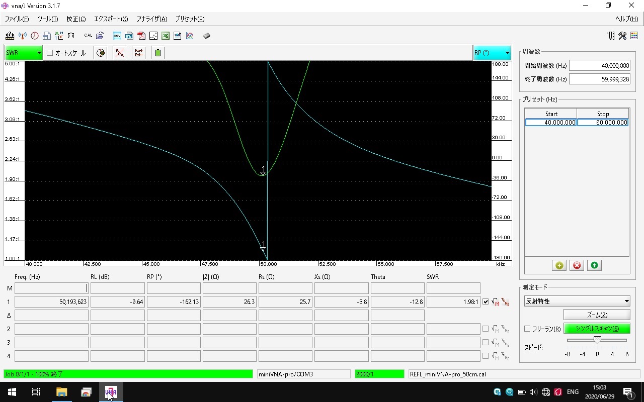 この状態を維持しながら、低SWRが実現できるかが問題ですね。しかし、実物と良く符合するのに、あらためて驚かされました。