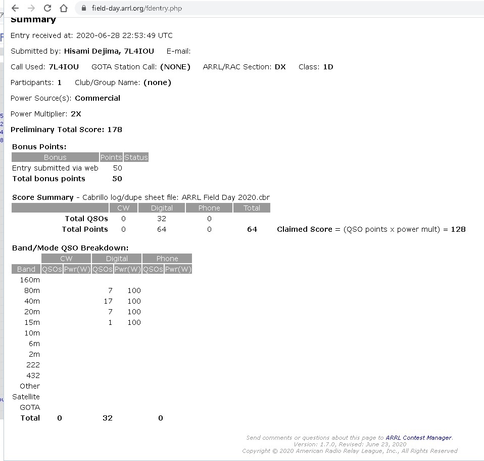 部門: (iv) DX High Power Single Op、(v) DX Low Power (100W) Single Op、 (vi) DX 10W Single Op