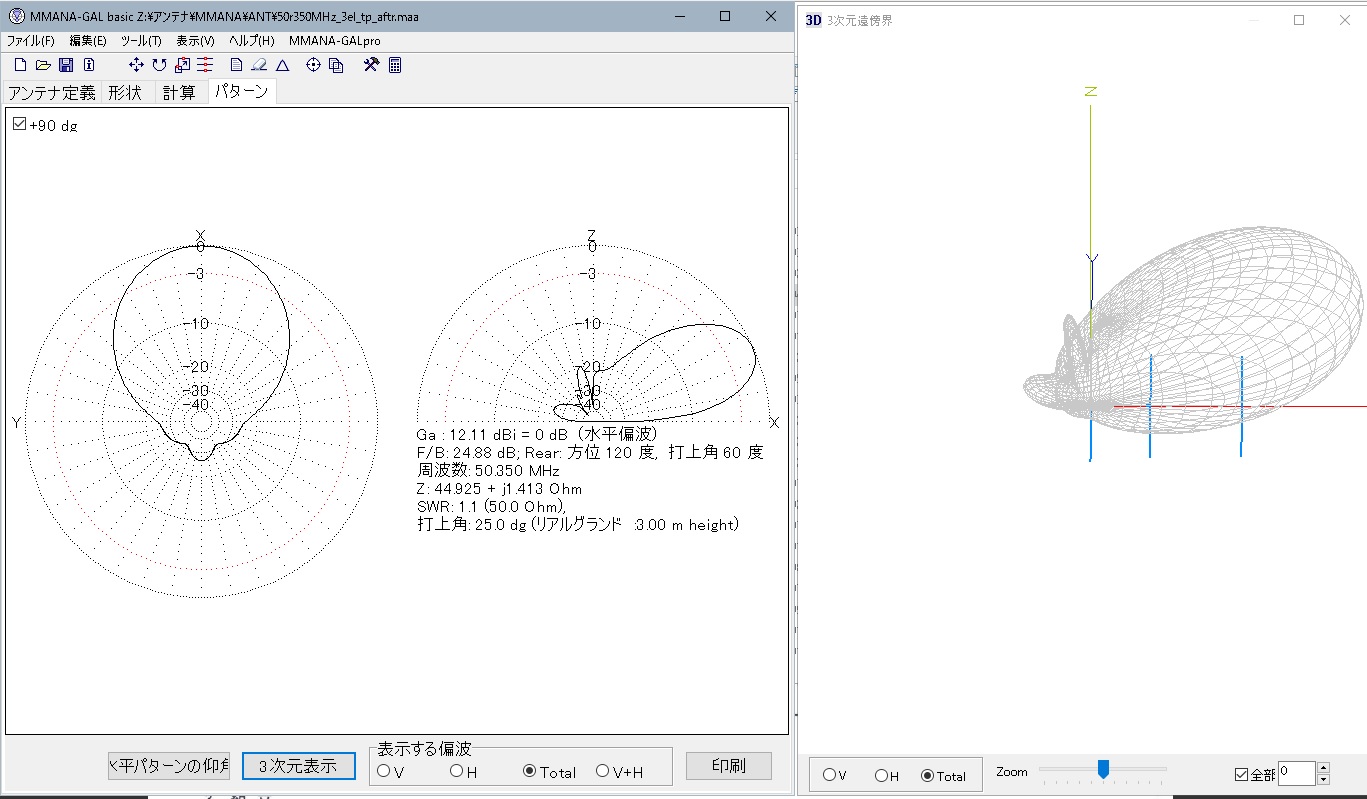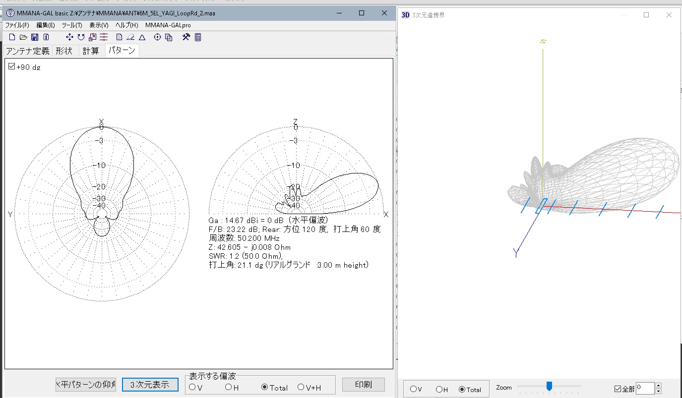 あくまでも理想的な条件ですが、地上高3メートルの場合、7エレと3エレの差が意外に小さいことに気が付きました。